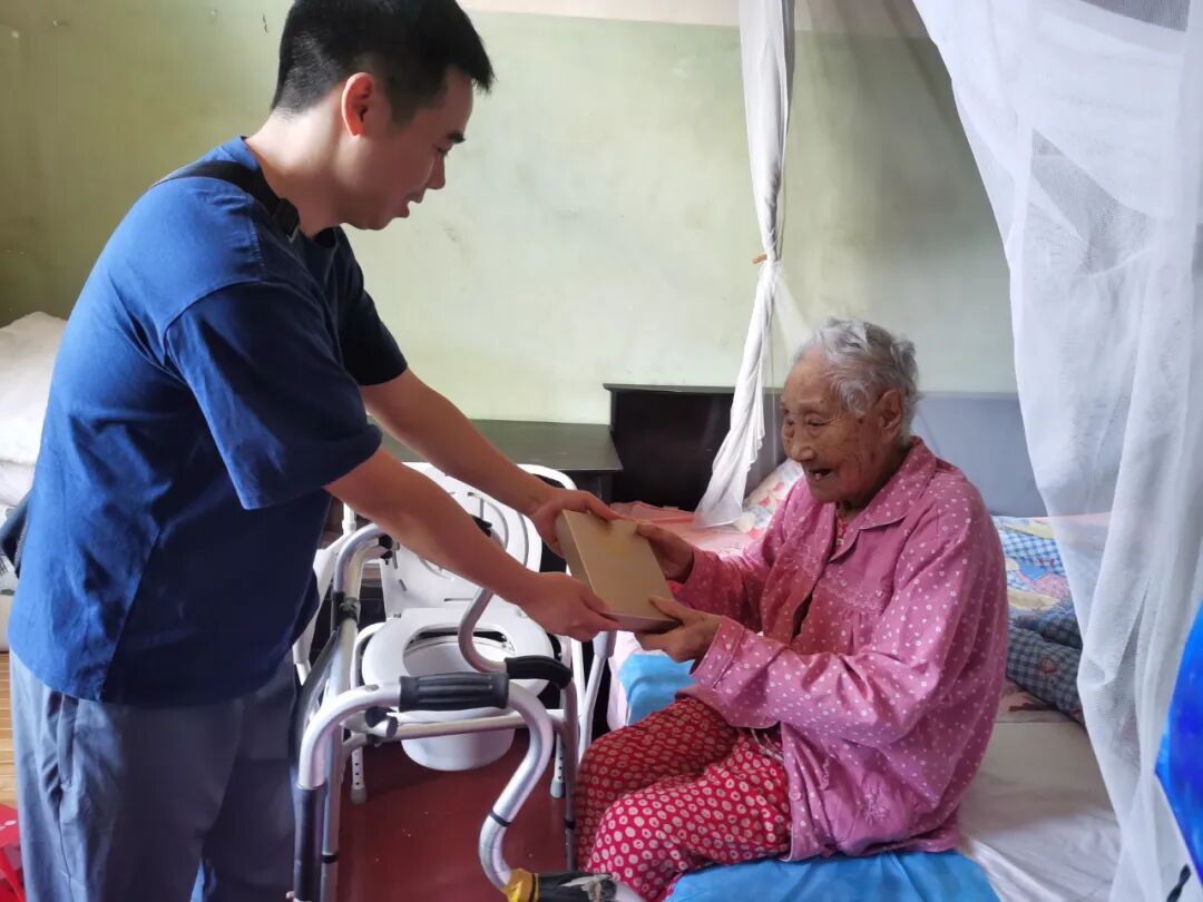 閩侯縣農(nóng)業(yè)農(nóng)村局工作人員為王玉林送上紀念章 當天,王玉林坐在床邊,雙手雖因年歲微微顫抖,但仍穩(wěn)穩(wěn)接過紀念章,布滿皺紋的臉上漾起欣慰的笑容——這抹笑容里,藏著一段跨越80年的烽火記憶,也映照著一位老戰(zhàn)士對黨和國家的赤誠初心。