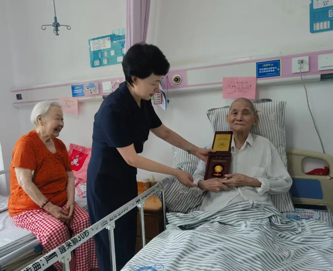 閩西的抗戰(zhàn)英烈犧牲安葬地多在省外,出生地的抗戰(zhàn)烈士紀(jì)念設(shè)施較少,為提高宣傳效果,龍巖市退役軍人事務(wù)局積極與抗日英烈犧牲安葬地所在退役軍人事務(wù)局聯(lián)系,開展代祭掃、聯(lián)合紀(jì)念英烈等活動。9月1日,在全國首批著名抗日英烈陳明的故居,與陳明犧牲安葬地山東臨沂華東革命烈士陵園視頻連線開展“千里同山河 共上一堂課”的活動。兩地小學(xué)生共講英烈故事,共學(xué)英烈知識,跨越時空追思英烈。在著名抗戰(zhàn)英烈廖海濤的家鄉(xiāng)中學(xué)舉辦紀(jì)念抗戰(zhàn)勝利80周年抗戰(zhàn)英烈事跡進校園活動,宣講員通過講述抗戰(zhàn)英烈陳明、廖海濤、羅化成英勇抗日的故事,激發(fā)了學(xué)生們的愛國情、報國志。同時,還編排了紀(jì)念廖海濤烈士的情景劇《鐵血丹心—廖海濤》,生動再現(xiàn)廖海濤烈士英勇無畏的一生??箲?zhàn)勝利紀(jì)念日前后,全市共組織開展抗戰(zhàn)英烈紀(jì)念活動20余場,受眾1.2萬人。央視新聞、央視《勝利日》、人民日報客戶端、中國新聞網(wǎng)、福建新聞聯(lián)播等中央、省級媒體都相繼報道了龍巖市開展抗戰(zhàn)英烈紀(jì)念活動的情況。 強化人文關(guān)懷 開展關(guān)愛烈屬走訪慰問活動 為表達對抗戰(zhàn)英烈家屬的深切關(guān)懷與崇高敬意,龍巖市退役軍人事務(wù)局部署各縣(市、區(qū))、各鄉(xiāng)鎮(zhèn)開展關(guān)愛抗戰(zhàn)英烈家屬活動,以實際行動傳遞溫暖,弘揚抗戰(zhàn)精神。 各縣(市、區(qū))、各鄉(xiāng)鎮(zhèn)退役軍人服務(wù)站工作人員分組到烈屬家中走訪,與烈屬們親切交談,詳細詢問他們的生活狀況、身體情況和困難需求,傾聽他們講述抗戰(zhàn)英烈們的英勇事跡,對烈士們?yōu)閲液腿嗣袼龀龅木薮鬆奚磉_了誠摯感謝,讓烈屬們感受到了來自黨和政府及社會各界的尊重與關(guān)愛。同時,向烈屬們宣傳《軍人撫恤優(yōu)待條例》《烈士褒揚條例》等褒揚撫恤政策,落實落細各項撫恤優(yōu)待政策措施,切實維護烈屬合法權(quán)益。對抗戰(zhàn)烈屬情況進行調(diào)查摸底,推薦廖海濤烈士的外孫女和邱子華烈士的孫子參加紀(jì)念中國人民抗日戰(zhàn)爭暨世界反法西斯戰(zhàn)爭勝利80周年大會,在天安門廣場現(xiàn)場觀禮九三閱兵??箲?zhàn)紀(jì)念日前夕,龍巖市退役軍人事務(wù)局還向抗戰(zhàn)老兵頒發(fā)“中國人民抗日戰(zhàn)爭勝利80周年”紀(jì)念章。