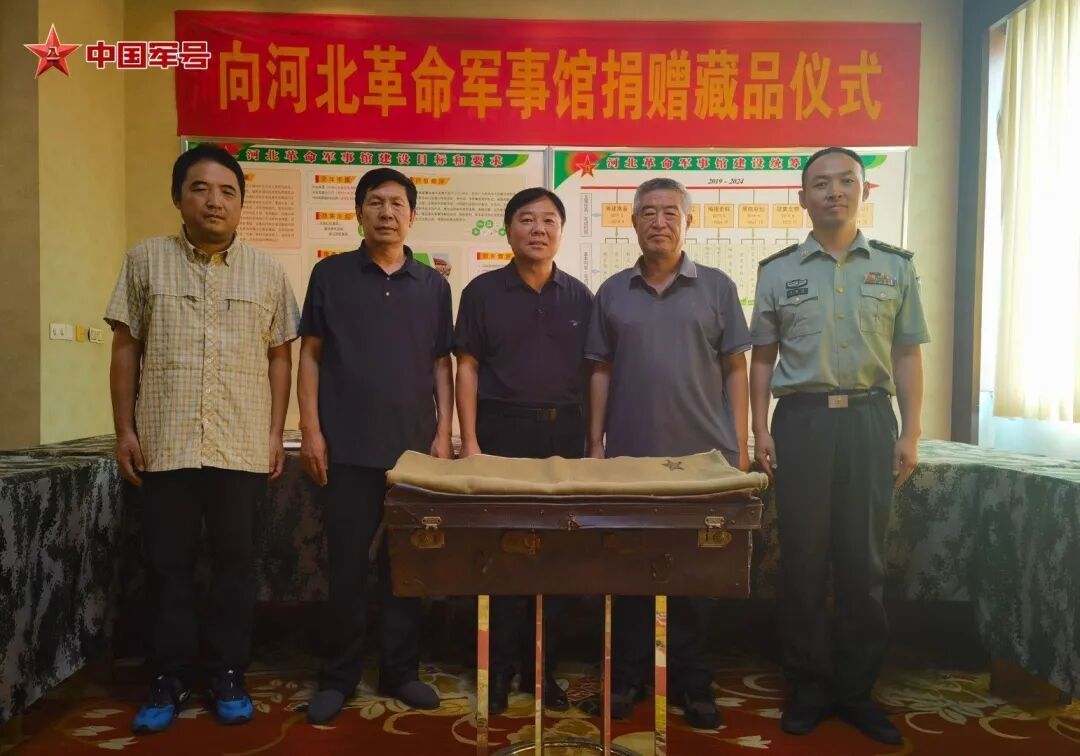 2024年8月1日,李斌(左三)向河北革命軍事館捐贈(zèng)外公賴官宜烈士的遺物。