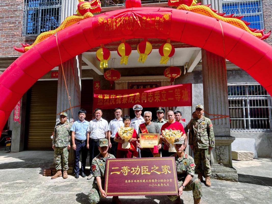 活動(dòng)現(xiàn)場(chǎng),氣氛熱烈,泉港區(qū)人武部部長(zhǎng)何晨凡現(xiàn)場(chǎng)宣讀了蔡茂貴同志二等功喜報(bào),泉港區(qū)政府副區(qū)長(zhǎng)朱添洪鄭重地為蔡茂貴父母佩戴綬帶、送上鮮花,泉港區(qū)委常委、區(qū)人武部政委熊洪向蔡茂貴父母送上立功慰問(wèn)金。在熱烈的掌聲中,送喜報(bào)隊(duì)伍還為蔡茂貴家屬送上“二等功臣之家”牌匾,黨和政府對(duì)功臣及其家屬的關(guān)懷和敬意,傳遞到現(xiàn)場(chǎng)每個(gè)人的心中,鄰里鄉(xiāng)親們紛紛投來(lái)贊許的目光,為這份榮耀感到由衷的自豪。