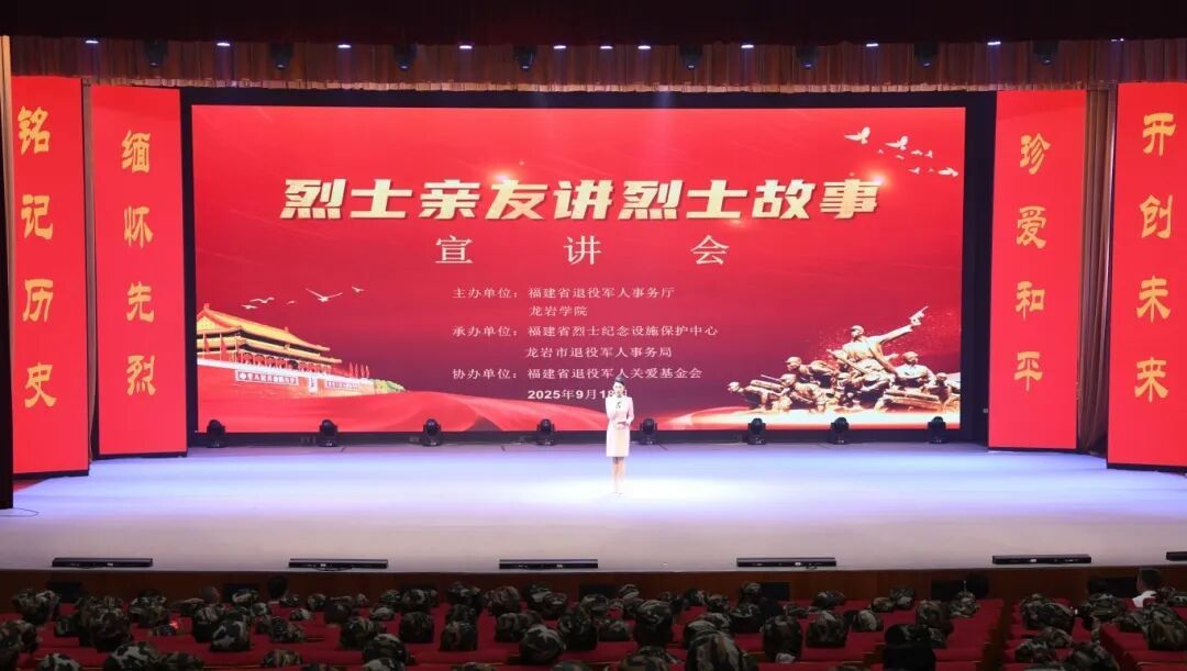 在“九一八”事變爆發(fā)94周年、并將迎來第12個國家烈士紀(jì)念日之際,9月18日上午,省退役軍人事務(wù)廳與龍巖學(xué)院舉行廳校共建協(xié)議簽約儀式,并開展“烈士親友講烈士故事”宣講活動,以實(shí)際行動學(xué)習(xí)貫徹習(xí)近平總書記在紀(jì)念中國人民抗日戰(zhàn)爭暨世界反法西斯戰(zhàn)爭勝利80周年大會上重要講話精神,激勵干部群眾和青年學(xué)子“銘記歷史、緬懷先烈、珍愛和平、開創(chuàng)未來”。省退役軍人事務(wù)廳黨組書記、廳長羅慶春,廳黨組成員、副廳長蔡靜南和龍巖學(xué)院黨委書記鐘發(fā)亮、校長鄒衛(wèi)東等廳校雙方領(lǐng)導(dǎo)出席,省退役軍人關(guān)愛基金會、省烈士紀(jì)念設(shè)施保護(hù)中心、龍巖市退役軍人事務(wù)局相關(guān)負(fù)責(zé)同志、六位烈士親友宣講員,以及龍巖學(xué)院師生代表1000多人參加活動。