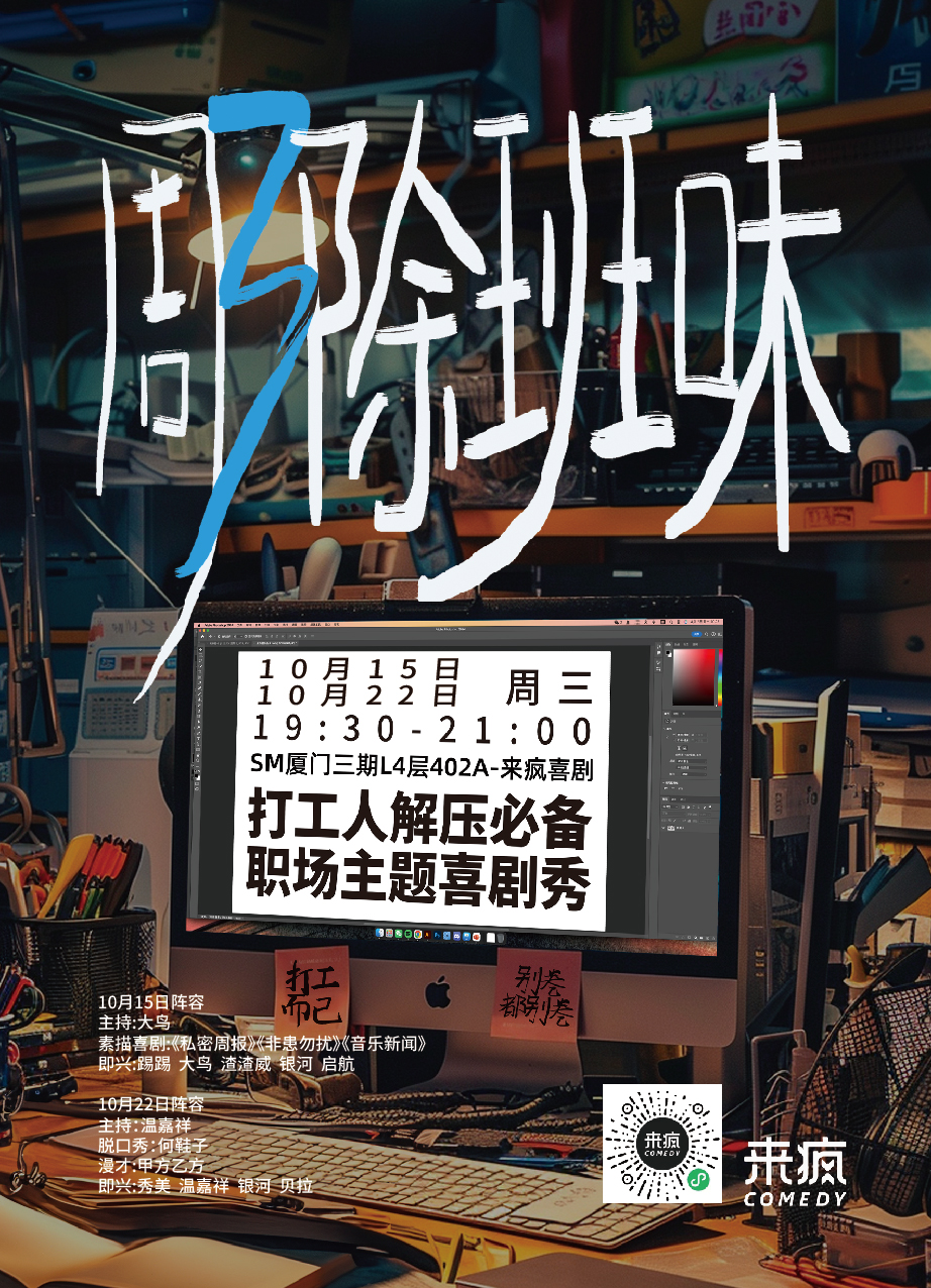 時(shí)間:10月15日、22日19:30<br/>地點(diǎn):SM廈門三期L4層402A-來瘋喜劇