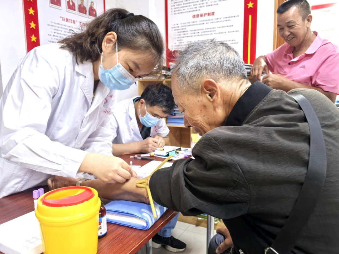 20日,在蓮峰鎮(zhèn)蓮東社區(qū)集中診療點,優(yōu)撫對象正在做抽血化驗