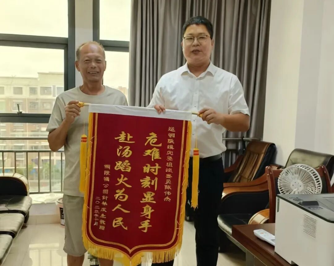 東山縣:夜闖火海,他破門降“魔” 10月20日,東山縣居民林先生手持錦旗,專程來到銅陵鎮(zhèn)人民政府,向在火海中英勇救援的鎮(zhèn)干部、退役軍人陳偉杰表達(dá)誠摯謝意。這面錦旗,也將人們的思緒拉回到那個驚險的夜晚。 10月14日晚,林先生家二樓突然冒出濃煙。發(fā)現(xiàn)險情后,其妻子及朋友第一時間嘗試撲救,但火勢蔓延速度遠(yuǎn)超預(yù)期。緊急之下,他們立即向周邊居民呼救,鄰居們迅速幫忙報警并通知社區(qū)。 正在鎮(zhèn)里值守的帶班領(lǐng)導(dǎo)陳偉杰接到火情通報后,立即帶隊奔赴現(xiàn)場。面對滾燙的房門和不斷涌出的黑煙,陳偉杰毫不猶豫,握緊燙手的門把,后退半步,一腳將門踹開!
