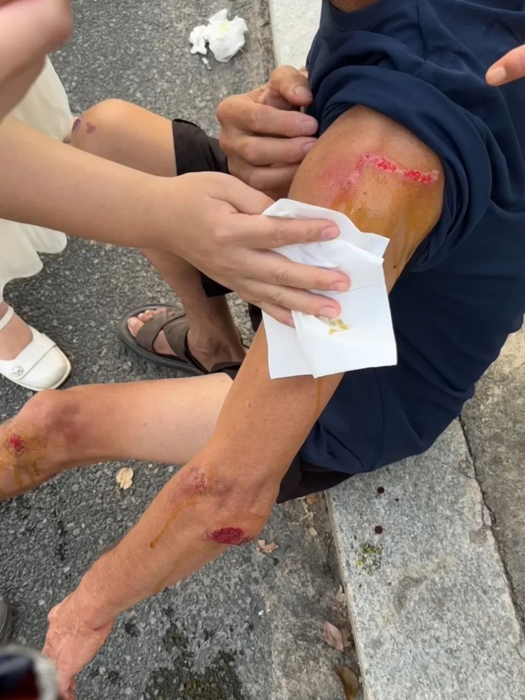 漳浦縣:路遇車禍,他跪地施救 10月17日下午,漳浦縣金浦大道與文昌路交叉口發(fā)生一起交通事故。一輛電動車與轎車相撞,騎車的老人和孫女應(yīng)聲倒地。老人手臂傷口血流不止,膝蓋、肩部多處受傷,小女孩也受驚哭泣。 危急時刻,路過的退役軍人楊澤毅毫不猶豫地上前幫忙?!袄喜?,腿能動嗎?”他一邊關(guān)切詢問,一邊單膝跪地仔細(xì)查看傷勢。見老人出血嚴(yán)重,他迅速將祖孫二人扶到路邊,沉著安撫道:“別怕,我?guī)湍幚韨??!?/p>