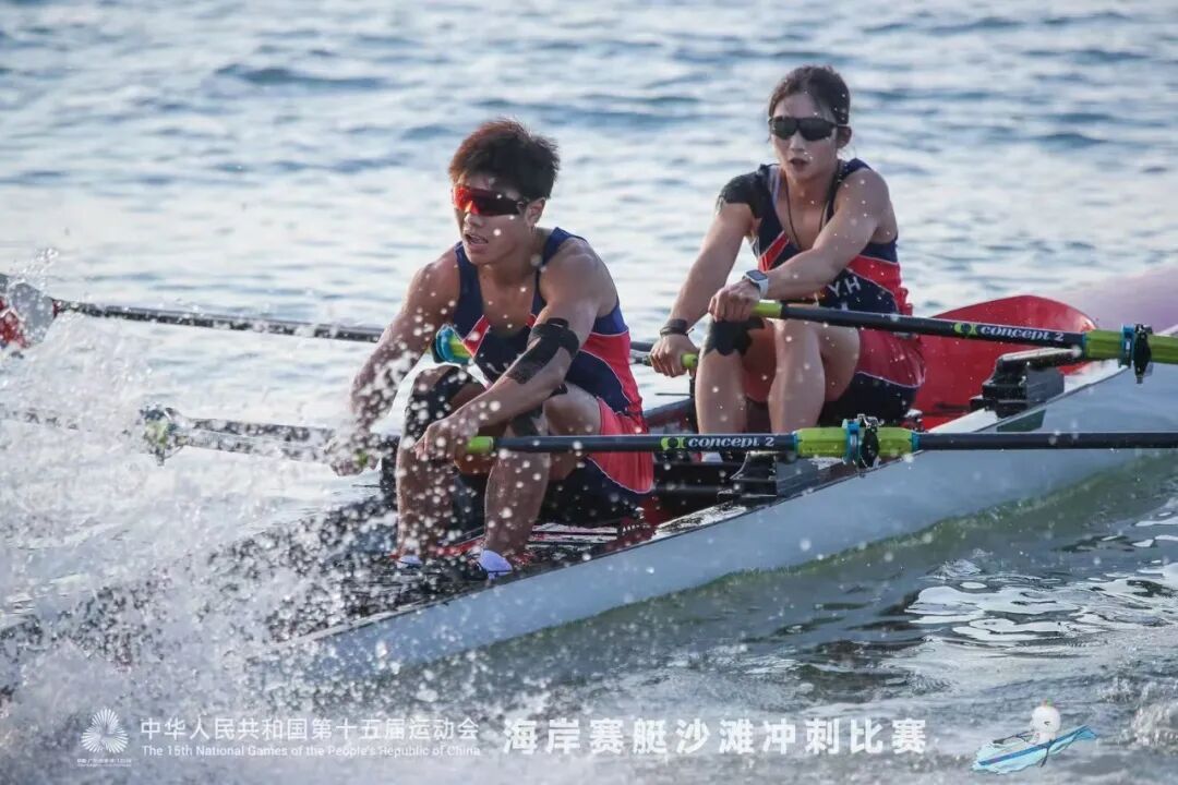 海岸賽艇混合雙人雙槳項(xiàng)目比賽中