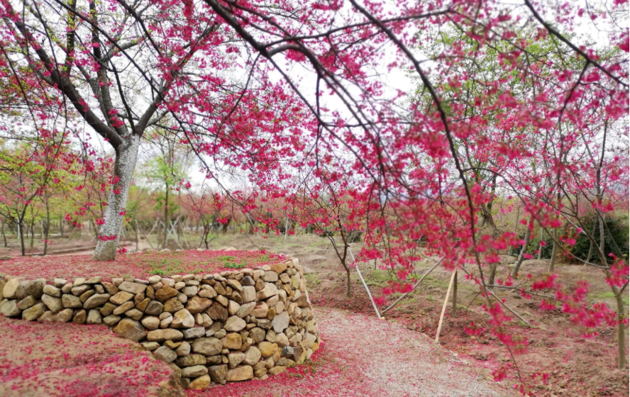 位于磨山南麓的東湖櫻園,連綿的花海如云似霞,亭臺(tái)橋榭掩映在山水之間,游客漫步其中,盡情享受春光帶來(lái)的美好。