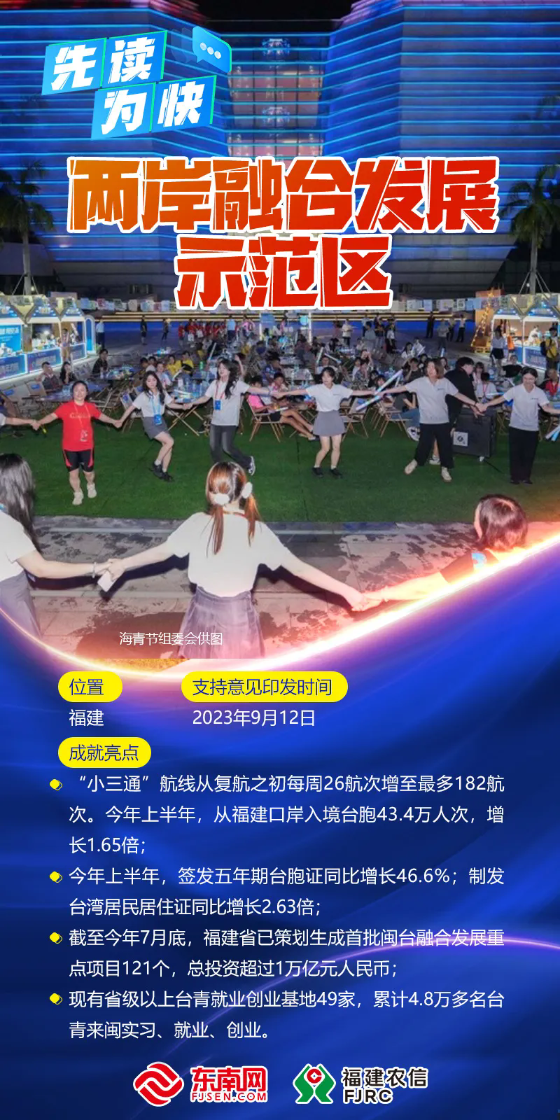 一年來,中央和國家機關(guān)有關(guān)部門加大政策賦能,出臺在本領(lǐng)域貫徹落實《意見》的一系列配套文件和政策舉措;福建省制定貫徹落實《意見》的實施意見,現(xiàn)已發(fā)布兩批28條政策措施,廈門、福州、平潭、龍巖等地市出臺貫徹落實《意見》的區(qū)域性政策舉措。如今,兩岸融合發(fā)展示范區(qū)建設(shè)已形成一批先行先試經(jīng)驗,取得一批首創(chuàng)性對臺融合發(fā)展成果,福建正日益成為臺胞臺企“登陸”的第一家園。[詳細(xì)]