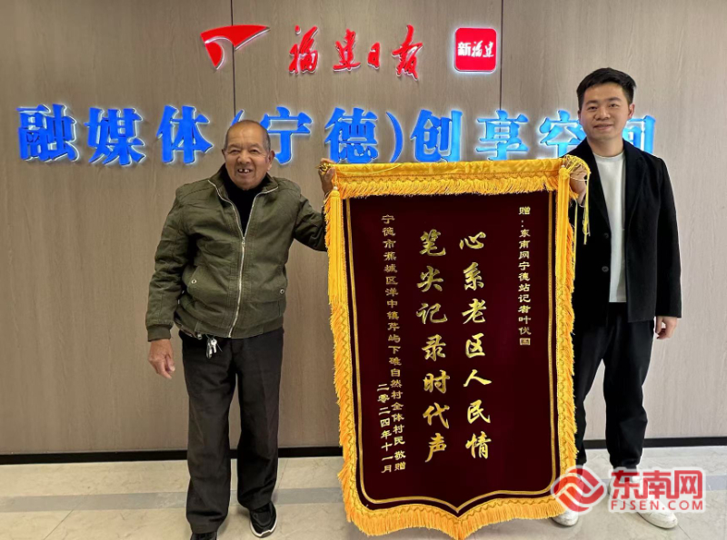 村民劉大爺為記者送錦旗。東南網(wǎng)記者 周濤 攝 莆田涵江萩蘆鎮(zhèn)的潭井橋,在2023年臺風“杜蘇芮”之際被沖毀,村民出行需繞行5公里小道。為解決出行難問題,政府牽頭修建,省、市補助資金,村民積極捐款180萬元。不料,村民的捐款用完了,省、市補助的資金還在區(qū)政府手上“走流程”,造成已接近完工的大橋停工?!吨蓖ㄆ辽健凡稍L報道《村民捐資180萬 莆田涵江潭井橋完工在即為何停工?》,推動當?shù)刂匾暯鉀Q,新橋建設重新啟動。