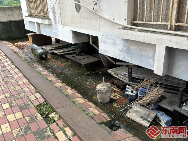 樓棟底層空隙處堆放了不少垃圾雜物。東南網(wǎng)見習(xí)記者 林宇鑫 攝