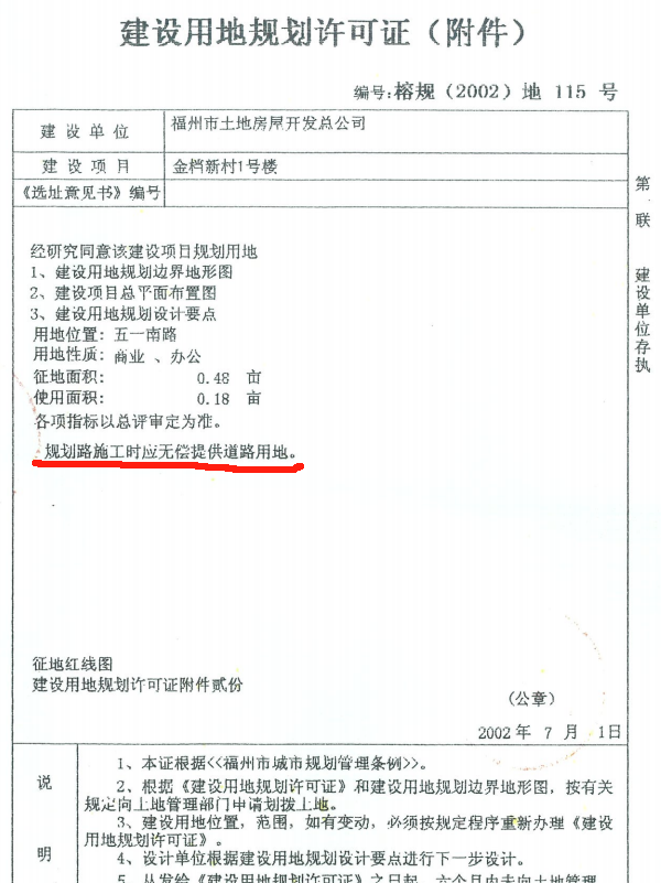 907928da39a5c85a5b38dc9056c17025 東南網(wǎng)3月25日訊(本網(wǎng)記者馮旭 朱琳 陳周 臺江區(qū)聯(lián)發(fā)臻品小區(qū)交房一年多,兩條配套路均未動工。 堵點(diǎn)1:鯉魚巷規(guī)劃路用地糾紛如何解? 聯(lián)發(fā)臻品小區(qū)配套路建設(shè)的第一堵點(diǎn),是小區(qū)南側(cè)的鯉魚巷規(guī)劃路,這里是進(jìn)入聯(lián)發(fā)臻品小區(qū)車庫的必經(jīng)之路。 在現(xiàn)場,臺江區(qū)建設(shè)局副局長黃雯向記者介紹,聯(lián)發(fā)臻品小區(qū)南側(cè)道路規(guī)劃為8米寬,在2023年就已完成招投標(biāo),建設(shè)單位展開了保護(hù)性施工。但相鄰的福晟錢隆天下小區(qū)居民對道路紅線提出異議,抗拒阻撓施工,導(dǎo)致施工無法繼續(xù)。 “我們會同自然資源和規(guī)劃部門以及洋中街道與居民代表進(jìn)行了溝通協(xié)調(diào),解答這些居民的疑問,希望大家能夠支持。我們也多次向區(qū)政府打報(bào)告說明情況,希望能夠盡快推動問題解決?!秉S雯表示。 針對紅線爭議,臺江區(qū)自然資源和規(guī)劃局用地規(guī)劃二科科長蔡秋奮告訴記者,此處規(guī)劃路建設(shè)需要福晟錢隆天下小區(qū)將停車場向內(nèi)退讓1米多,這部分面積原本就屬于道路紅線,被福晟錢隆天下小區(qū)占用了十幾年。但福晟錢隆天下小區(qū)的居民認(rèn)為,按規(guī)定道路與建筑退距不得低于10米,該距離應(yīng)從建筑物投影線也就是從陽臺外緣起測量,而不是從建筑外墻測量,因此產(chǎn)生了爭議。 “當(dāng)時(shí),我們跟這些居民代表一起去了福州市自然資源和規(guī)劃局調(diào)檔,對比了土地證和規(guī)劃總平圖,確認(rèn)道路沒有占用福晟錢隆天下項(xiàng)目用地紅線。福州市自然資源和規(guī)劃局也專門發(fā)函答復(fù),確認(rèn)福晟錢隆天下2#樓北側(cè)退道路紅線是從建筑主體墻起算(不含樓梯間、陽臺)。”蔡秋奮表示,“實(shí)際退距大約是10.37米?!?/span> 由于群眾阻撓,這段路的修建再無聲息。協(xié)調(diào)工作何時(shí)才能突破,除了協(xié)調(diào)還能采取什么措施?臺江區(qū)建設(shè)局及洋中街道辦事處到場負(fù)責(zé)人均表示:已經(jīng)協(xié)調(diào)多次,因群眾反應(yīng)較為激烈,“沒什么進(jìn)展”。 堵點(diǎn)2:攔路建筑該“拆違”還是該征遷? 聯(lián)發(fā)臻品小區(qū)地下車庫的出口位于小區(qū)北側(cè),這里早年規(guī)劃了另一條配套路。然而,這段路的東頭被穎源大廈旁搭建的兩層建筑攔在路中。究竟該“拆違”還是該征遷,讓相關(guān)部門犯了難。 站在打著“棋牌室 茶 商務(wù)室”招牌的兩層建筑前,臺江區(qū)房地產(chǎn)征收工程有限公司副經(jīng)理林立介紹,從征收的角度看,《城市規(guī)劃條例》于1984年出臺,在此之前個(gè)人修建的建筑可以百分之百給予賠付,此后修建的建筑可以按照年限進(jìn)行打折賠付,前提條件是所有人要提供他在本建筑物內(nèi)的戶籍信息。根據(jù)該公司核查的航拍圖,這兩層建筑是在1984年至2004年之間出現(xiàn)的,具體是哪一年還需進(jìn)一步查證。由于該建筑所有人沒有提供任何的產(chǎn)權(quán)信息、土地信息和相關(guān)的戶籍證明,在沒有產(chǎn)權(quán)信息的情況下,該建筑屬于違建,按照征收條例可以按重置價(jià)也就是建筑材料價(jià)格進(jìn)行賠付。但重置價(jià)與正常征收差距極大,且需提供社區(qū)和屬地街道出具的該建筑是該所有人建設(shè)的證明,所有人不會愿意拆除。征收公司多次與其溝通,對方均不愿出面洽談?wù)魇帐乱恕?/span> 記者了解到,穎源大廈原名金檔新村1號樓。福州市2002年頒發(fā)的榕規(guī)(2002)地115號建設(shè)用地規(guī)劃許可證上,對該建筑的選址和面積都有清楚的記載,還明確標(biāo)注了“規(guī)劃路施工時(shí)應(yīng)無償提供道路用地”字樣。 “我們在2023年8月就對這兩層建筑發(fā)出了限期拆除決定書,”臺江區(qū)城市管理和綜合執(zhí)法局執(zhí)法科孫朝丹告訴記者,當(dāng)事人提起了訴訟,并提供了該建筑1986年就已存在的航拍圖。不過,該航拍圖上的建筑與目前存在的建筑,在位置上并不相符。因此,這一建筑到底存在了多少年還是無法確定?!跋乱徊轿覀兇蛩氵M(jìn)一步調(diào)查取證,如果它確實(shí)是后面形成的,城管部門會立案重啟調(diào)查程序。我們一走拆除程序,當(dāng)事人就可以去法院訴訟,最后以法院的最終判決為準(zhǔn)?!标惓け硎?。 穎源大廈用地許可證上寫明“應(yīng)無償提供道路用地”。(臺江區(qū)自然資源和規(guī)劃局供圖) 堵點(diǎn)3:金尊名都小區(qū)圍墻及活動平臺怎么拆? 聯(lián)發(fā)臻品小區(qū)北側(cè)規(guī)劃路的西頭,是金尊名都小區(qū)用鐵欄桿樹起的圍墻,欄桿圍起的區(qū)域內(nèi)建設(shè)了一個(gè)圓形的活動平臺。這些設(shè)施的拆除成為聯(lián)發(fā)臻品小區(qū)配套路建設(shè)的又一堵點(diǎn)。 臺江區(qū)建設(shè)局市政科徐佳向記者表示,金尊名都小區(qū)圍起的這部分區(qū)域占用了道路紅線,由于歷史遺留原因被一直占用,修路時(shí)居民不同意退讓。“小區(qū)的圖紙上都是有標(biāo)注的,按理說修路時(shí)要無條件退讓出來,我們在道路施工時(shí)可以一并拆除,并按照道路紅線將小區(qū)圍墻修建到位。業(yè)主什么都不用做,但他們?nèi)匀徊粯芬猓