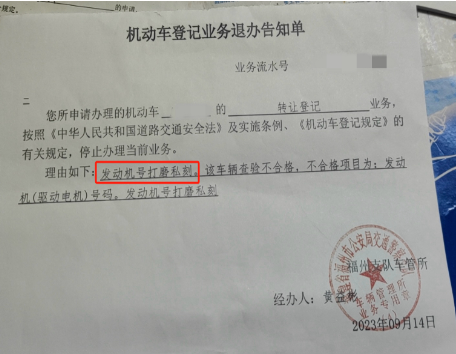 近日,福清市民袁先生向《直通屏山》反映,他購買的二手車發(fā)動(dòng)機(jī)號(hào)被私刻,平潭、福州兩地車管部門都告知不能辦理過戶登記,而法院判決要他履行購車合同完成車輛過戶,令他左右為難。